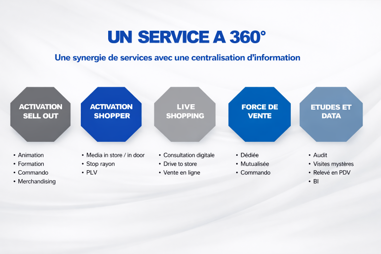 En réunissant au sein d’une même structure l’activation commerciale, l’expérience shopper, le live shopping, la force de vente et la data, nous vous offrons une réponse globale, agile et performante.